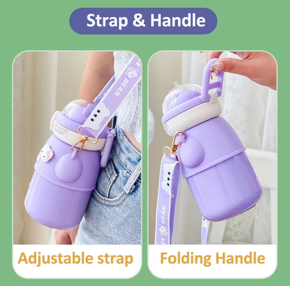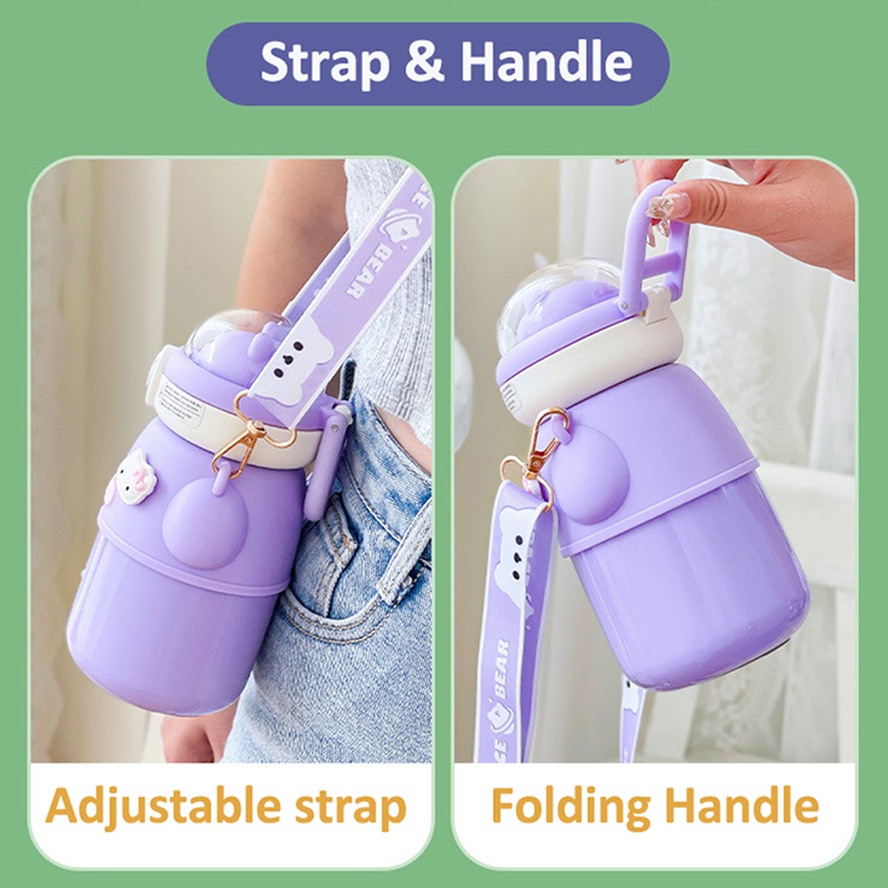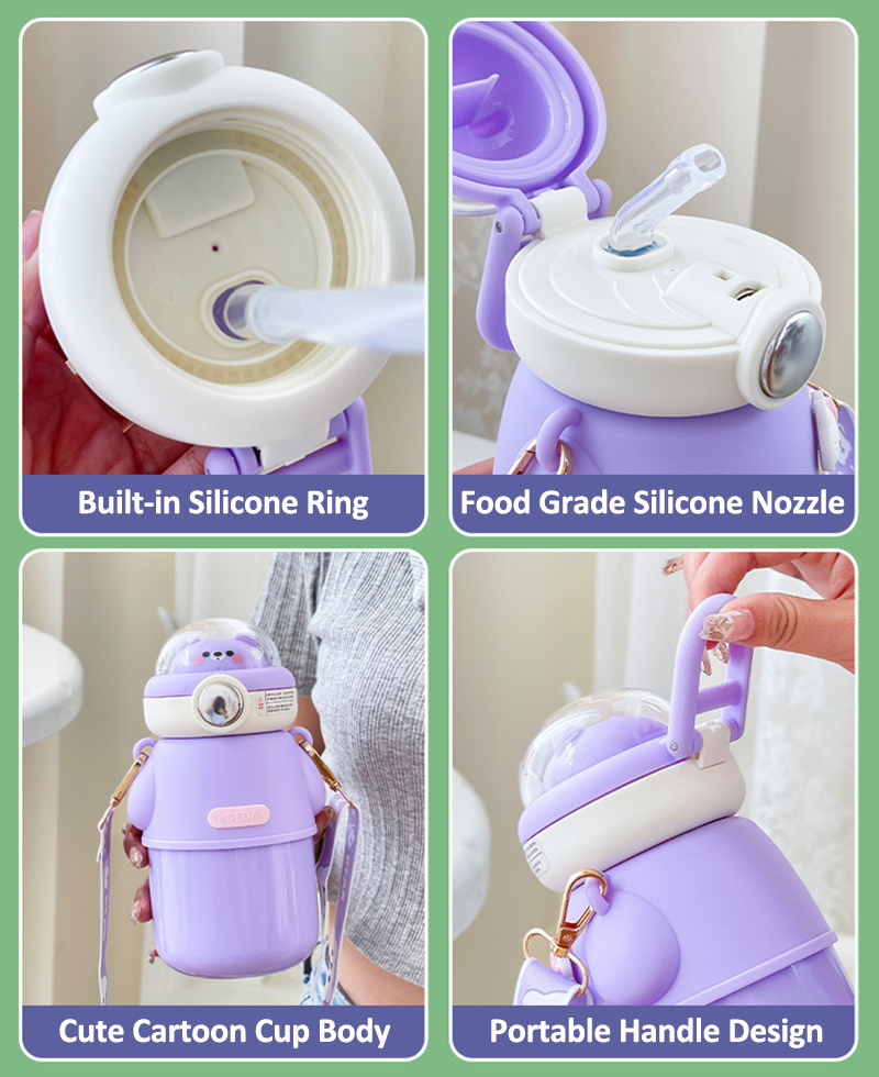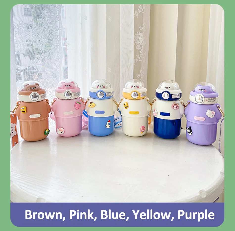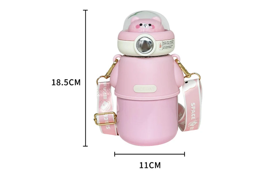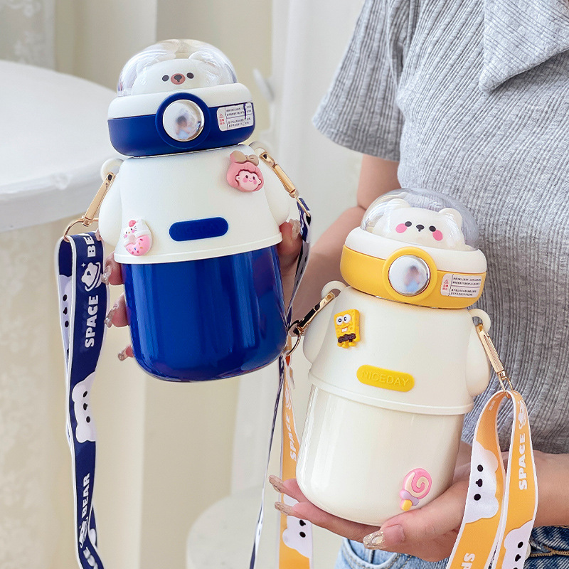 Cute Astronautics Bear Thermos Water Bottle With Straw For Kids Girls Portable School Stainless Steels Insulation Water Cup 500ml