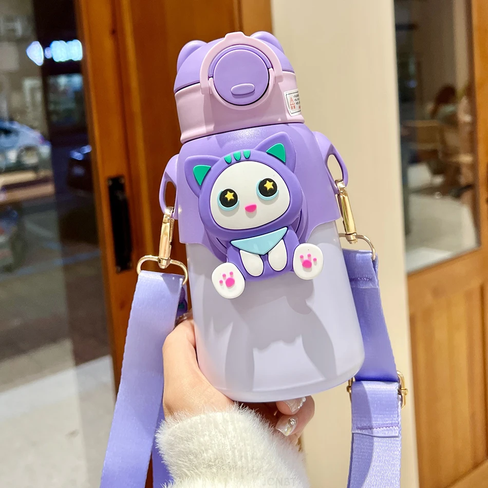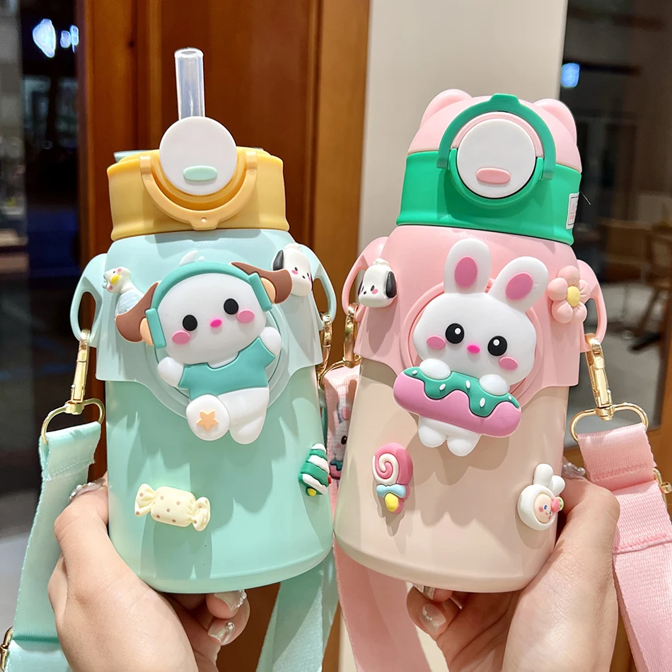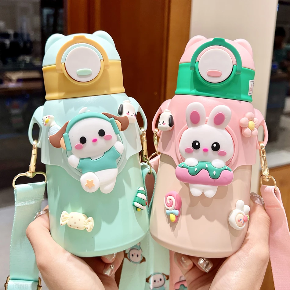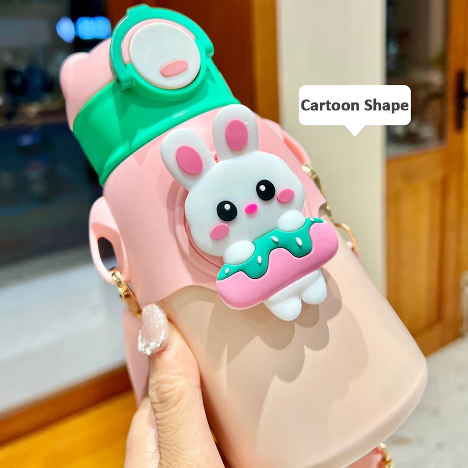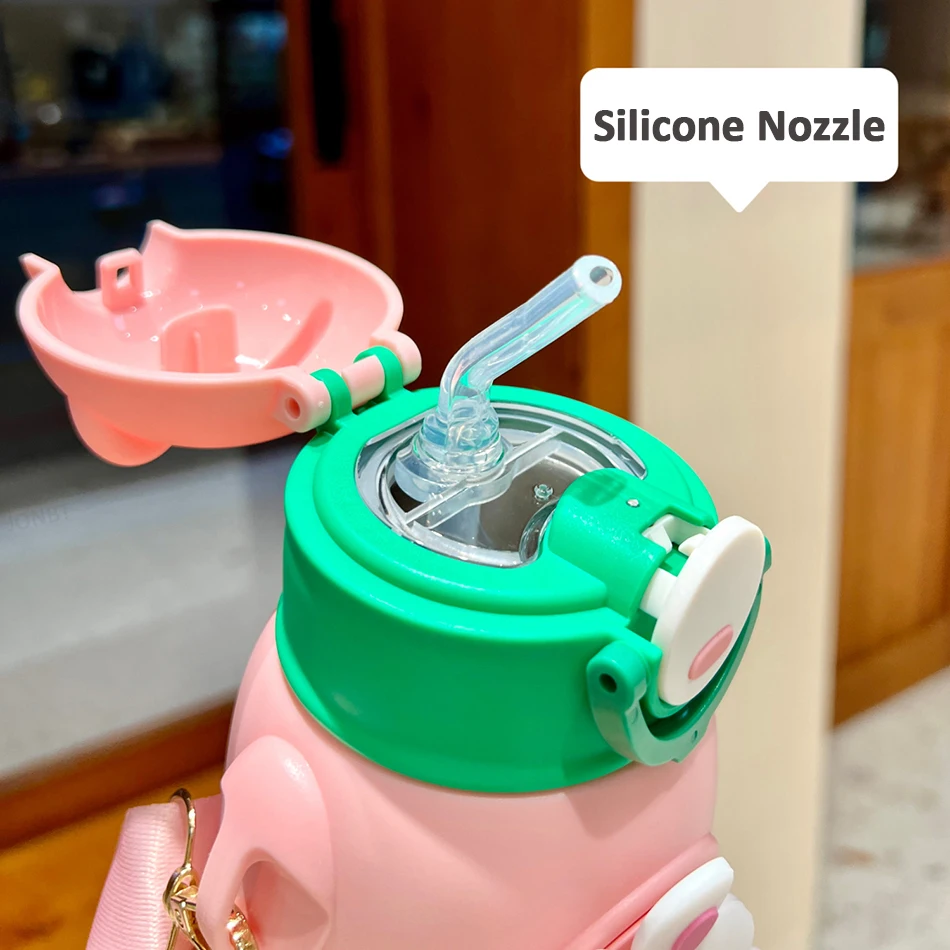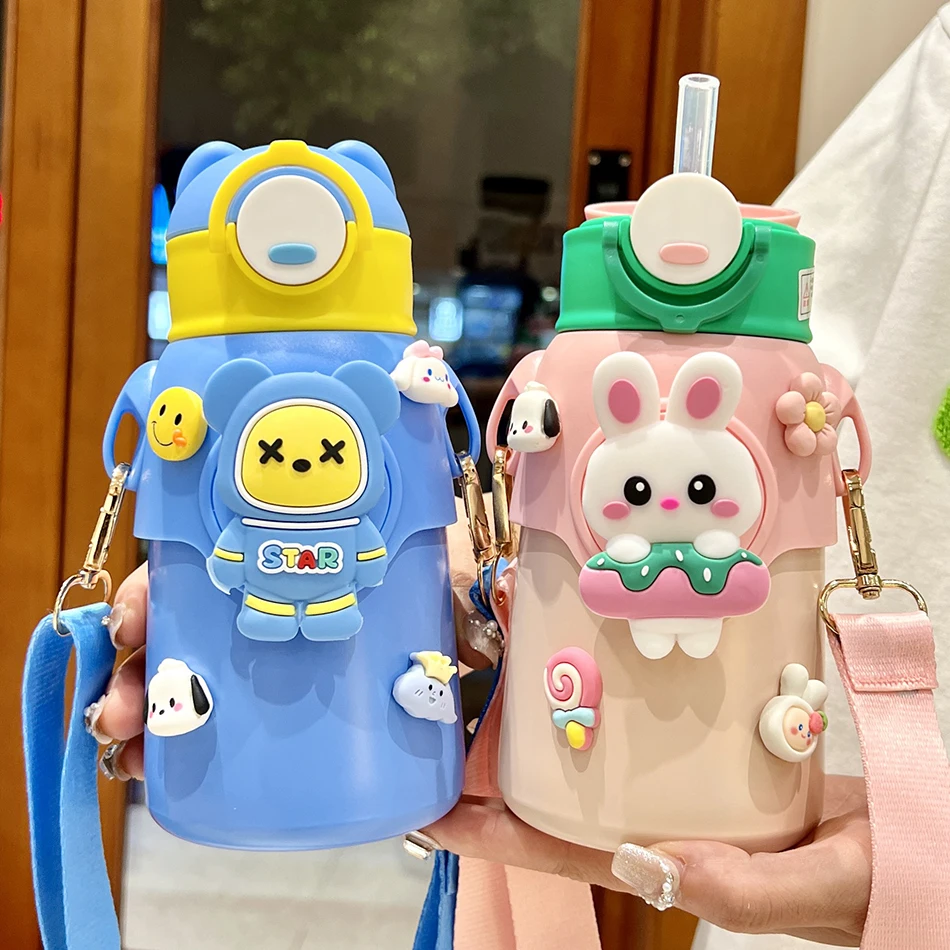 Cute Cartoon 316 Stainless Steel Children's Thermos Water Bottle With Straw Students Kindergarten Boy Girl Thermal Insulated Cup