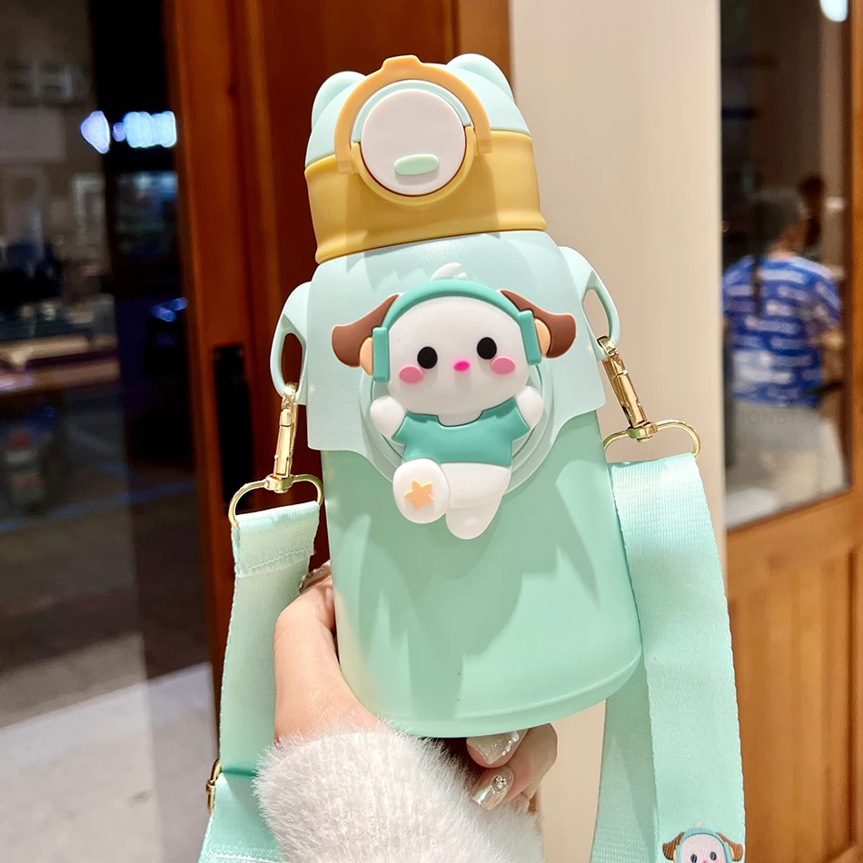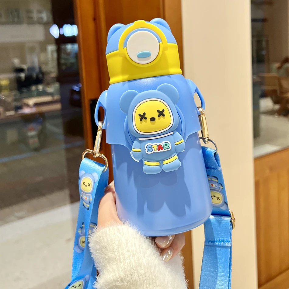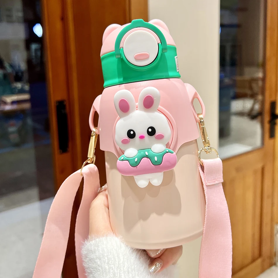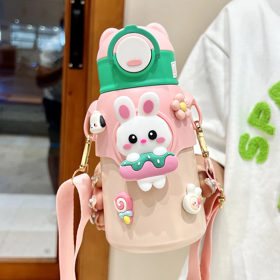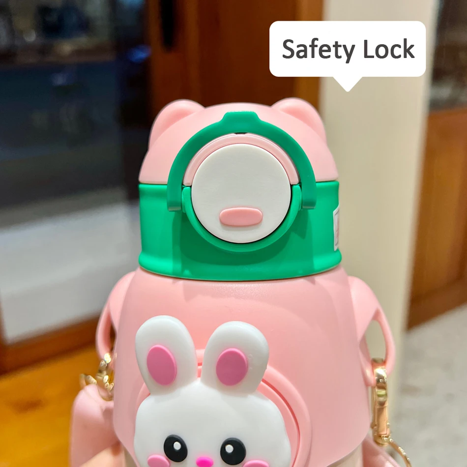 Cute Cartoon 316 Stainless Steel Children’s Thermos Water Bottle With Straw