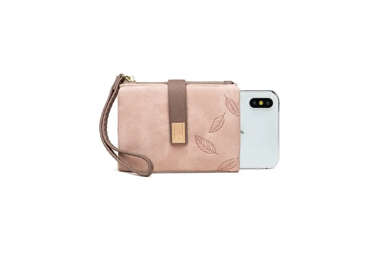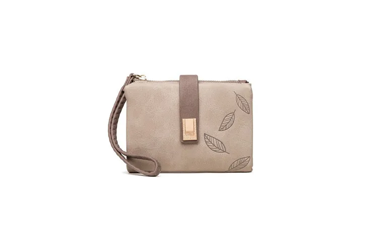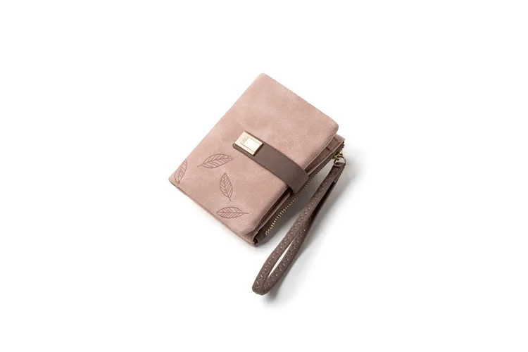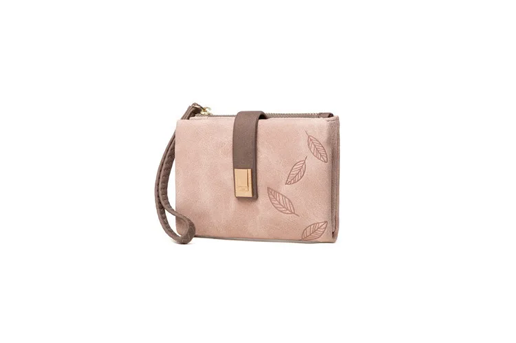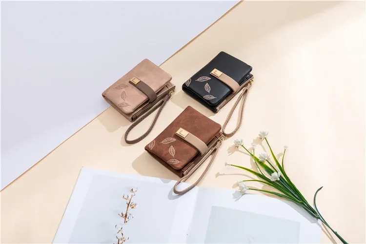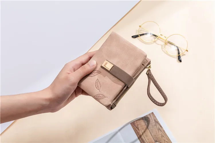 Engraved Leaves Women Wallets Fashion PU Leather Small Wallet Women Soft Ladies Wristlet Zipper Coin Purse Card Holder Cartera