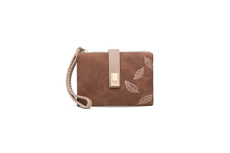 Engraved Leaves Women Wallets Fashion PU Leather Small Wallet